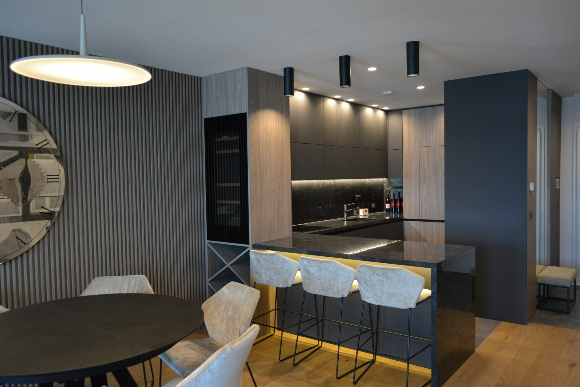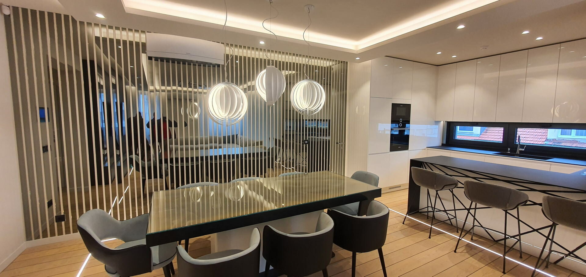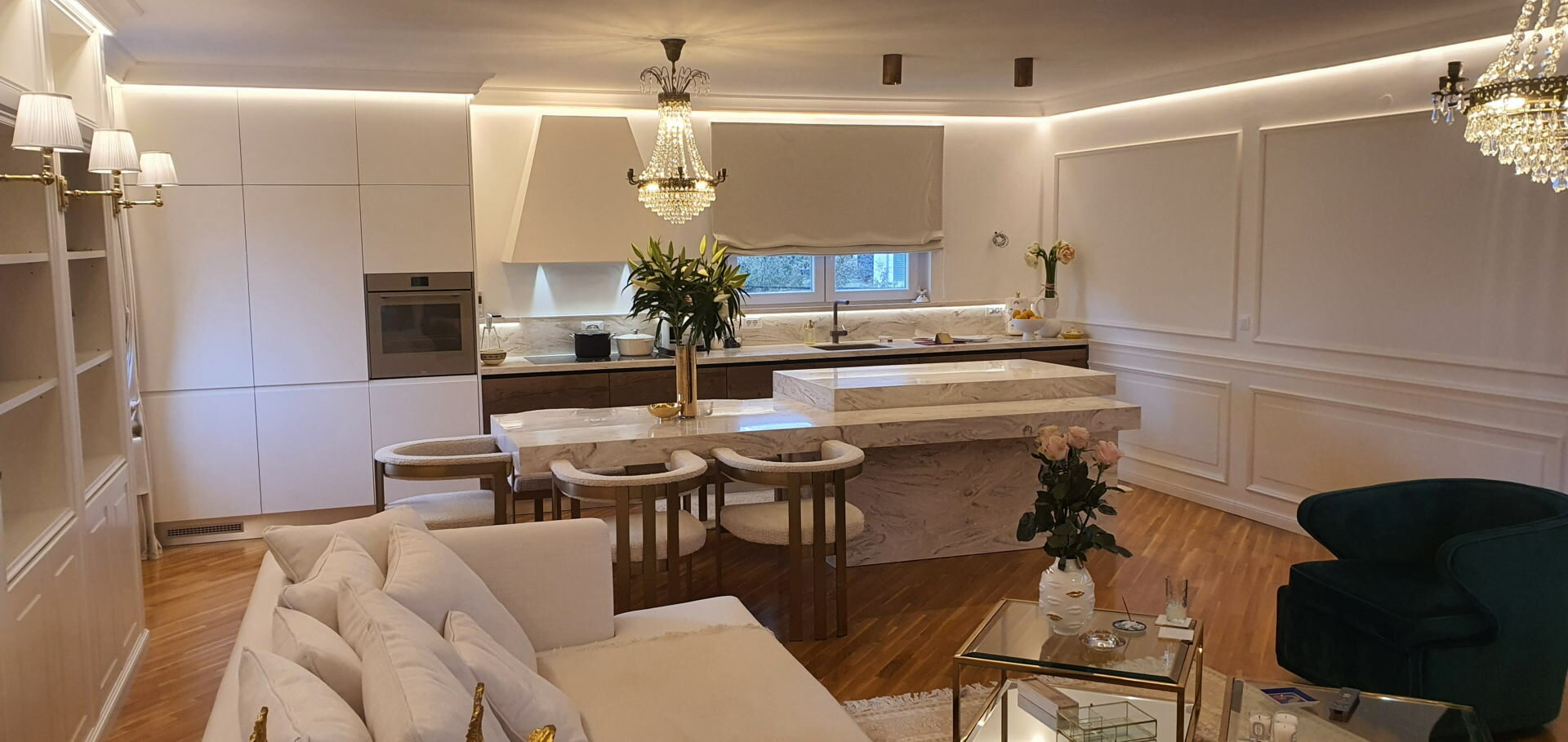 It is in the design and organization of the kitchen area that the functioning of the family and their way of understanding the living area comes to the forefront. Danijel Interiors has a very rich experience when it comes to interior kitchen design and custom kitchen furniture. Customer requests, their tastes, standard and possibilities makeup a range that is hard to perceive. From classic kitchens in living areas of buildings to the most exclusive villas, where special materials are used on request, the technique of opening elements in all directions and opening drawers on touch with the installation of the world’s top equipment and sensor technology.