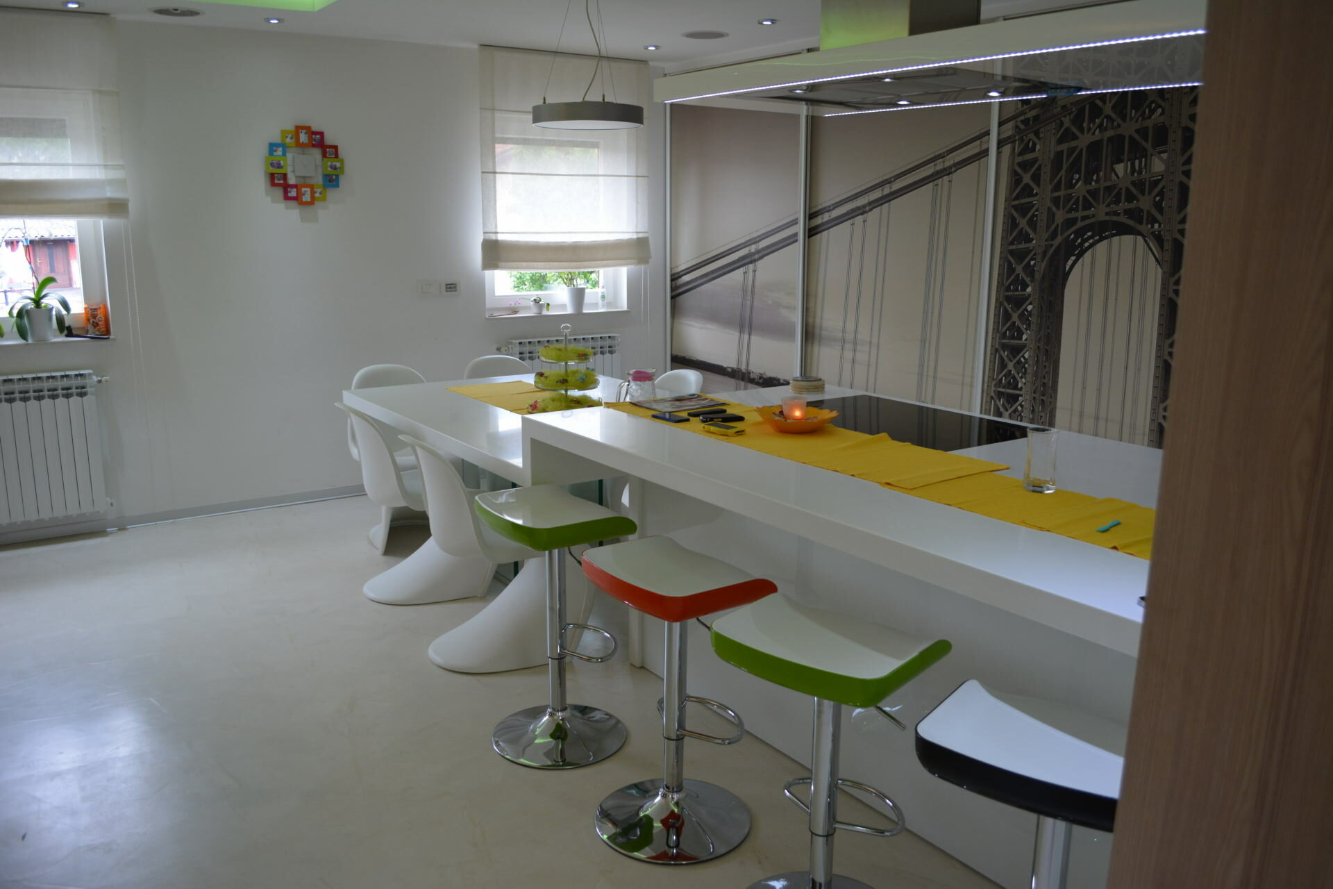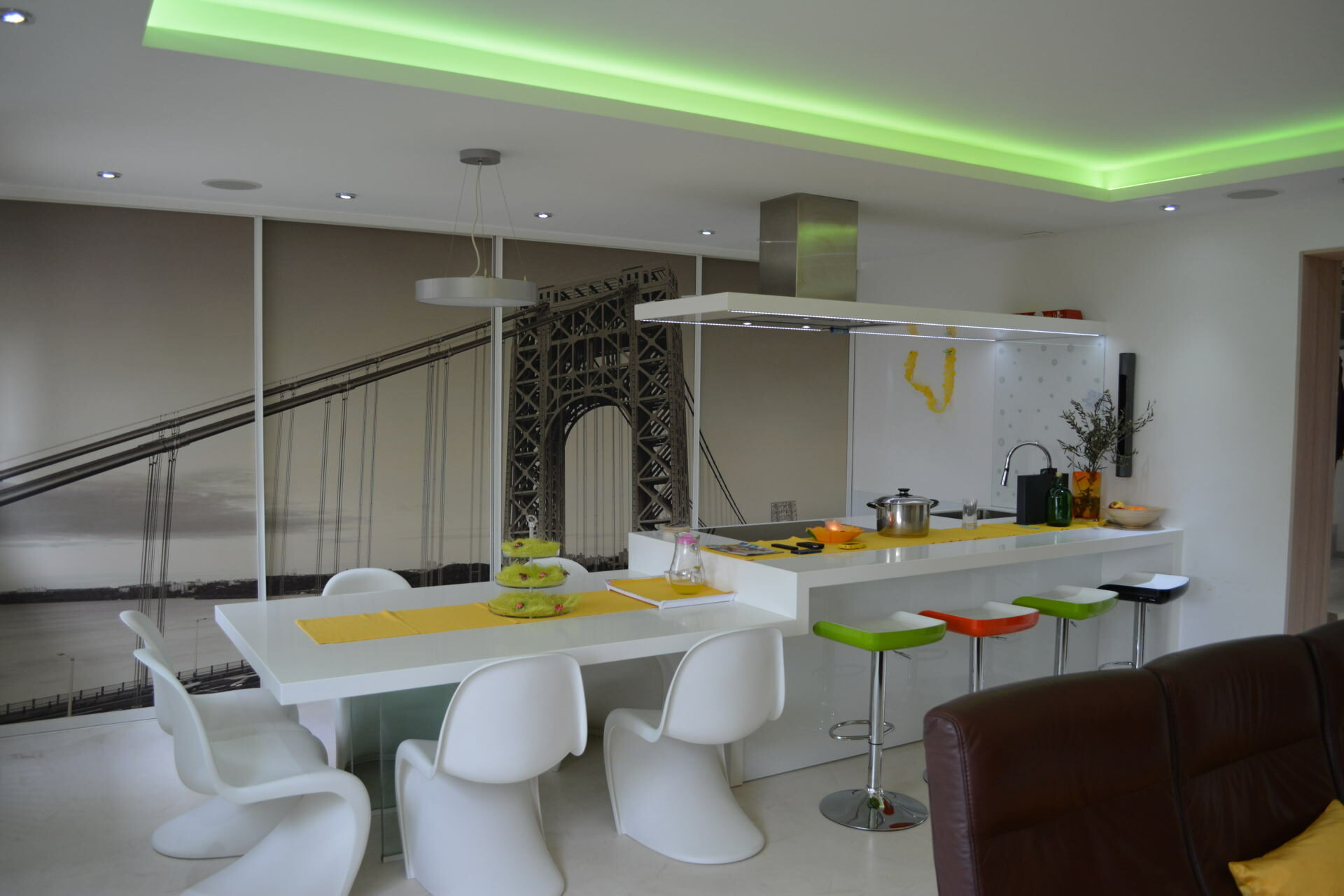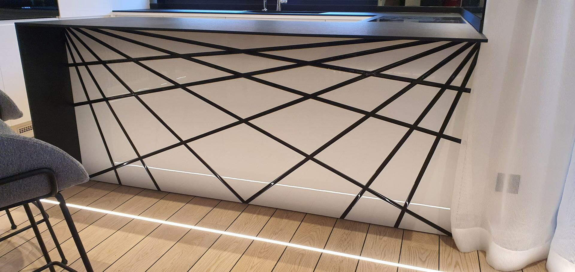 We provide the manufacture of such kitchen with elegant, attractive and modern solutions in countless different shades of colors with the possibility of installing high-quality appliances. At the same time they perfectly fit into the composition of the whole space through style and color. Range is from classic shapes to attractive futuristic design. Available details are numerous: from door elements made of laminated chipboard with stainless steel detailing, aluminum and other suitable materials.